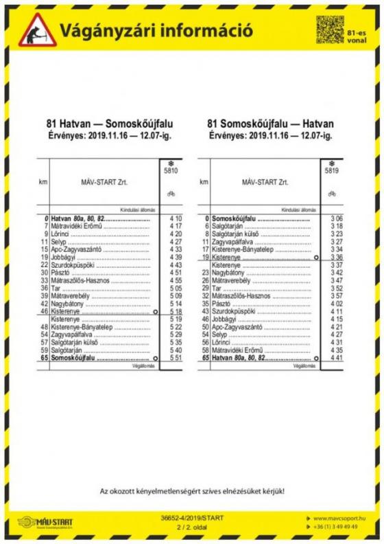 Vasúti menetrend változás