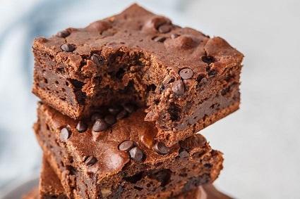 A két keveréket összeöntjük, és simára kikeverjük, beleforgatjuk a csokicseppek felét, majd egy sütőpapírral bélelt kisebb tepsibe vagy sütőtálba öntjük, elsimítjuk, megszórjuk a maradék csokival, és 175 fokos sütőbe tolva, légkeverés mellett 25 perc alatt megsütjük.